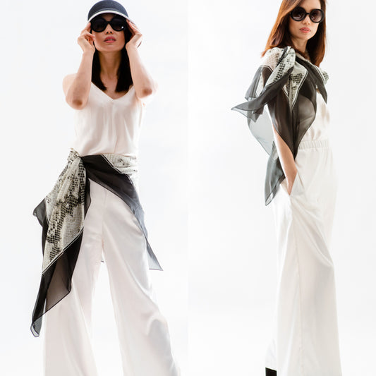 Classic Square Silk Wrap set with magnetic HU-CLIP button (CSCBW,CSCBB)